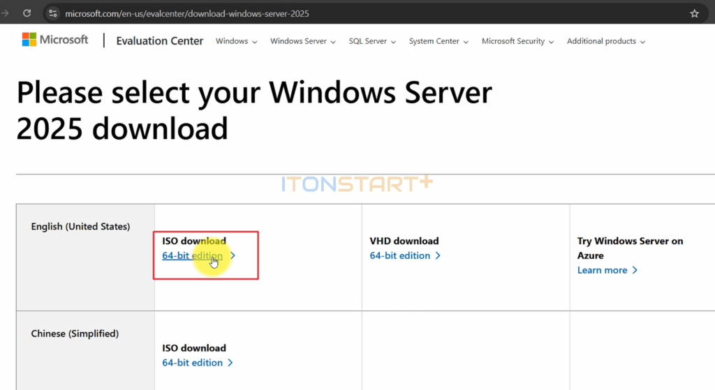 8. ให้คลิกที่ ISO Download เพื่อดาวน์โหลดตัวติดตั้ง Windows Server 2025