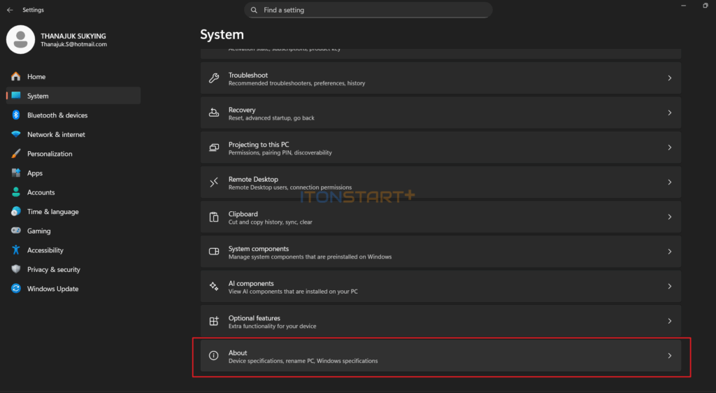 4. ให้เลื่อน scroll bar ลงมาด้านล่างสุด จะเจอคำว่า About ให้คลิกเข้าไปในส่วนนั้น