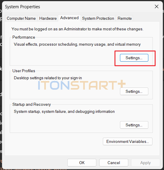 6. ให้กดปุ่ม setting ในส่วนของการตั้งค่า Performance